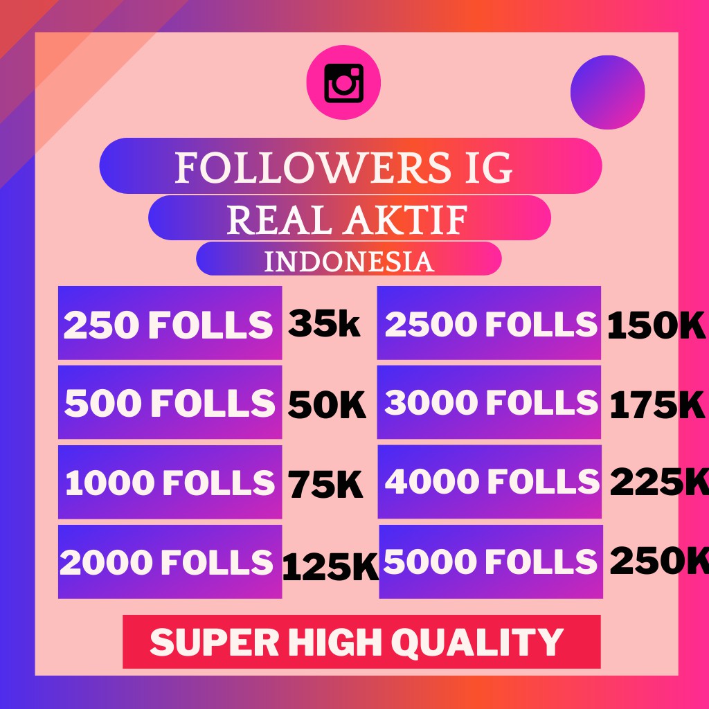 TERLARIS! TAMBAH FOLLOWERS MURAH AKUN IG INDO REAL AKTIF ... from cf.shopee.co.id Bisa cek di website socialmediabuilder sekarang juga anda dapat memiliki ribuan follower aktif real human dari jasa followers kami dengan harga termurah. Layanan lainnya yang tersedia yakni meningkatkan popularitas dan menambahkan jumlah like dengan gratis. Follower mereka sangat aktif, dan itu yang membuat akun mereka tersohor di instagram. 500 followers = rp 75.000. Nikmati layanan penambah pengikut followers dan likes gratis tanpa spam. Jika mengetahui cara yang tepat, maka kamu bisa memiliki followers aktif atau akun asli yang tentunya bagus untuk meningkatkan engagement akun kamu. Anda bisa beli jumlah 1k, 2k, 3k, 4k, 5k, 10k. Banyak layanan lain yang sedang promo sehingga anda dapat membeli seluruh layanan kami sekarang juga beli followers instagram.